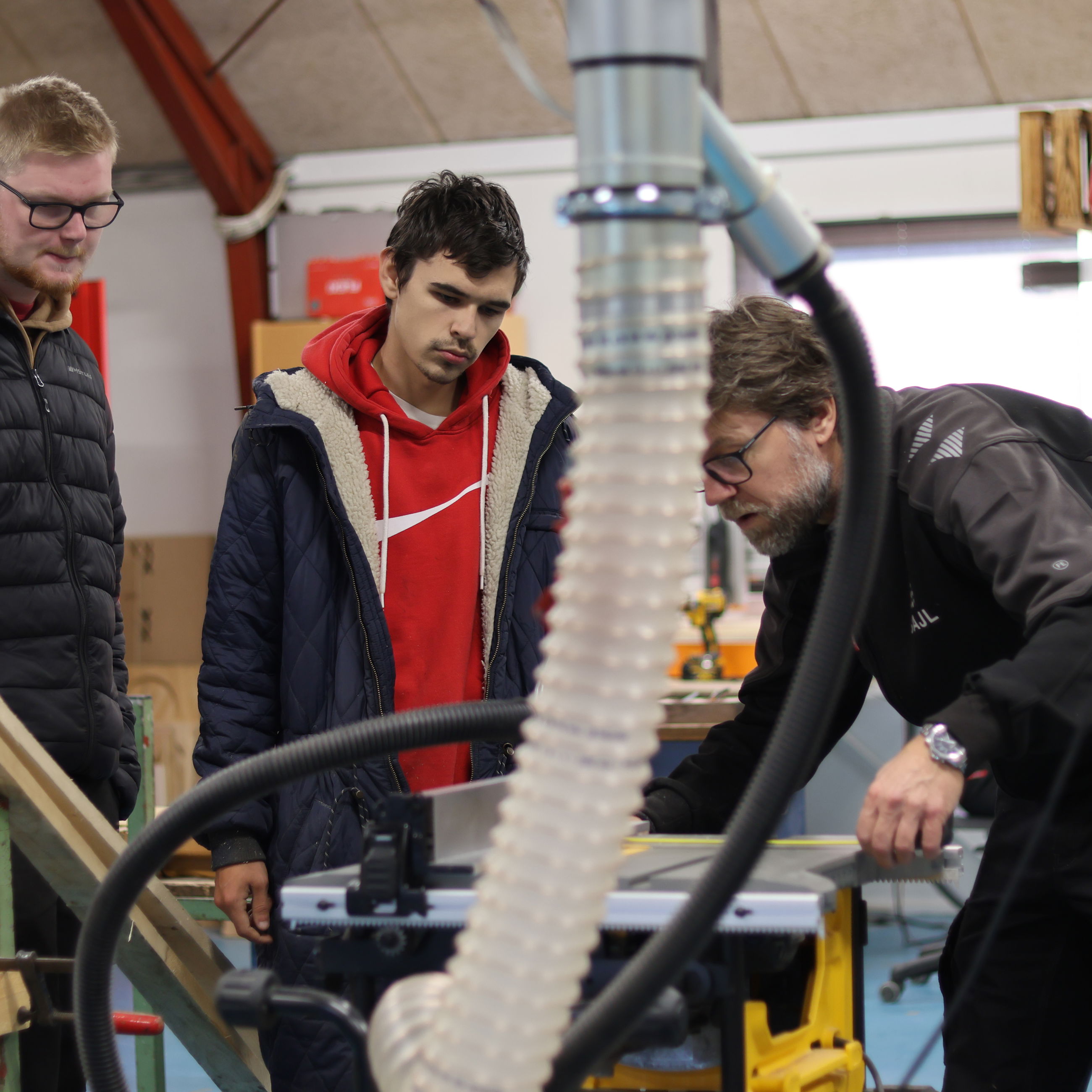 Bygge- og vedligeholdelsesopgaver er også en stor del af hverdagen på holdet. Vi istandsætter lokaler, laver inventar og producerer til salg i vores butik. Yderligere har vi forskellige renoveringsopgaver i kommunen, ligesom vi også hjælper med kulisser til ungdomsskolens musical