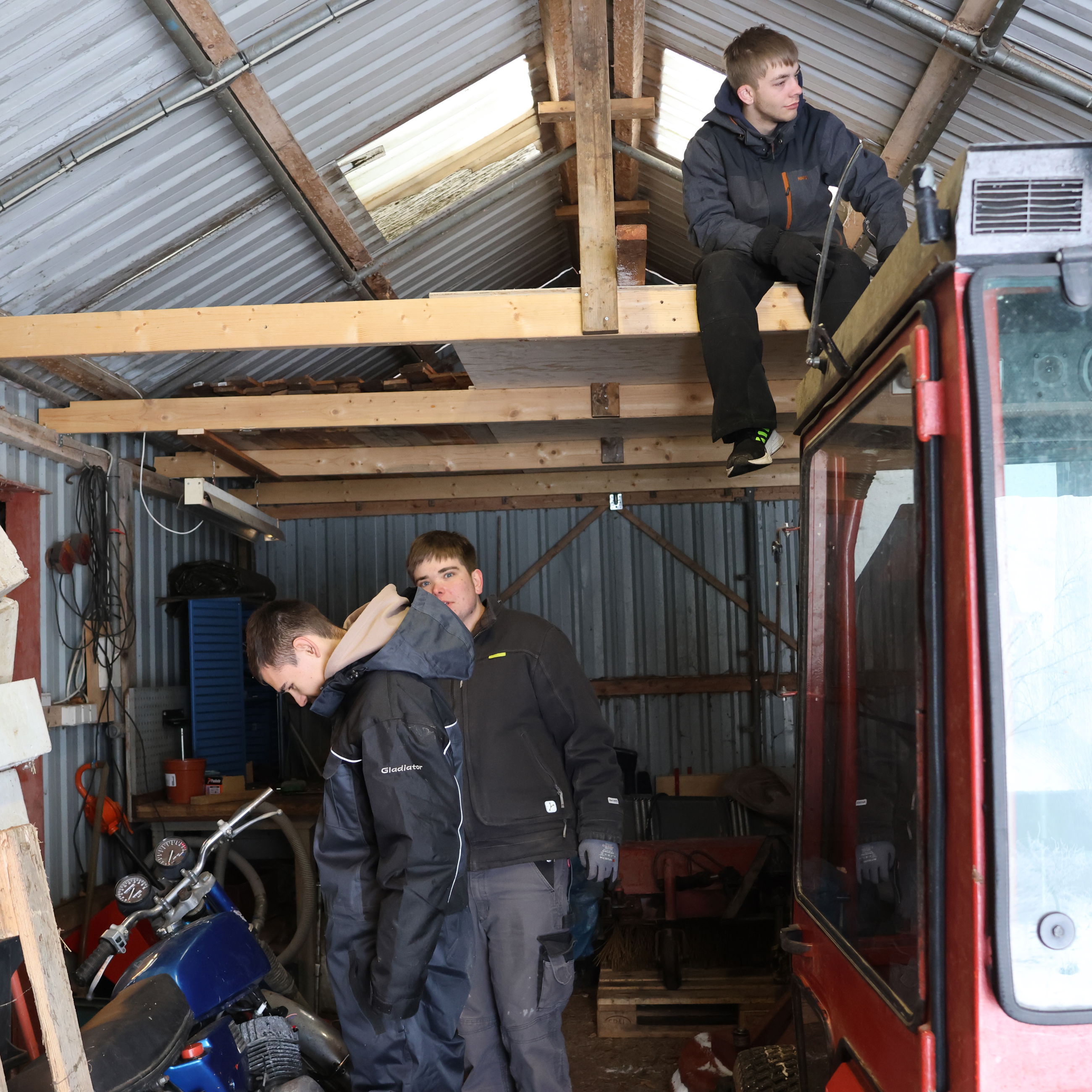 Da vi råder over forskellige køretøjer og havemaskiner, bruger vi også tid på at renovere og vedligeholde disse. Vi arbejder med motorlære og simple maskiner. Desuden udfører vi en del kørselsopgaver for os selv og andre.
