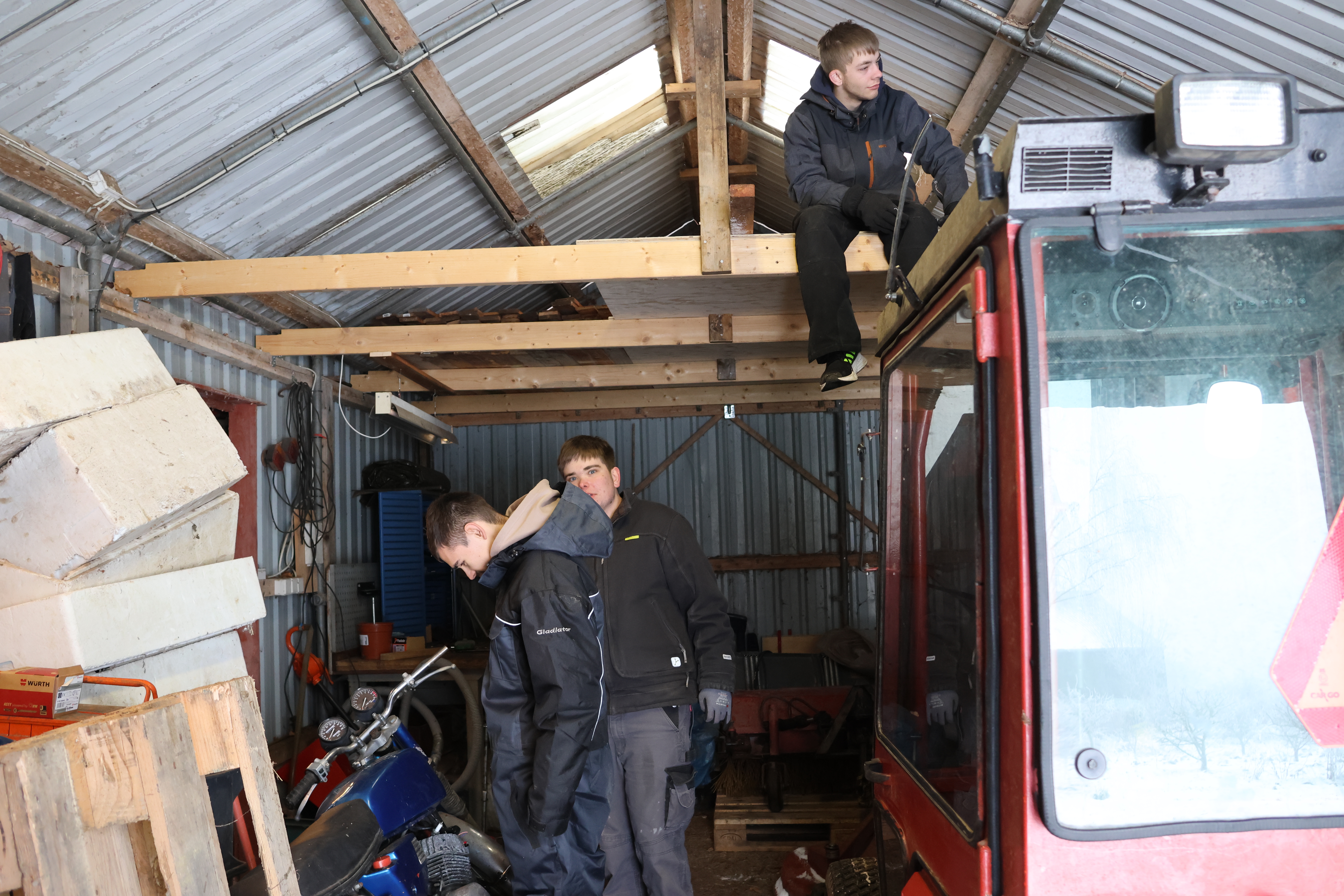 Da vi råder over forskellige køretøjer og havemaskiner, bruger vi også tid på at renovere og vedligeholde disse. Vi arbejder med motorlære og simple maskiner. Desuden udfører vi en del kørselsopgaver for os selv og andre.